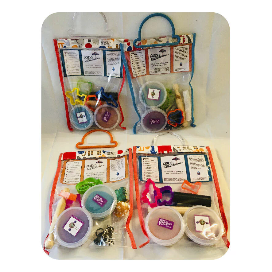 Edad recomendada: A partir de los 2 años y siempre acompañado o supervisado por la presencia de un adulto responsable. Los objetos más pequeños se incluyen en bolsita separada para que sea el adulto quien se lo ofrezca en caso de considerar que el niño o la niña puedan manipularlos. A partir del año en el juego con masa es recomendable.