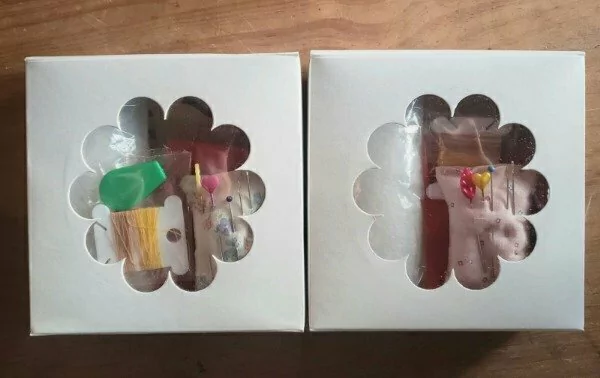 Cajita para confeccionar 3 pequeños muñecos de tela a mano: Gato, Pajarito y Hongo.