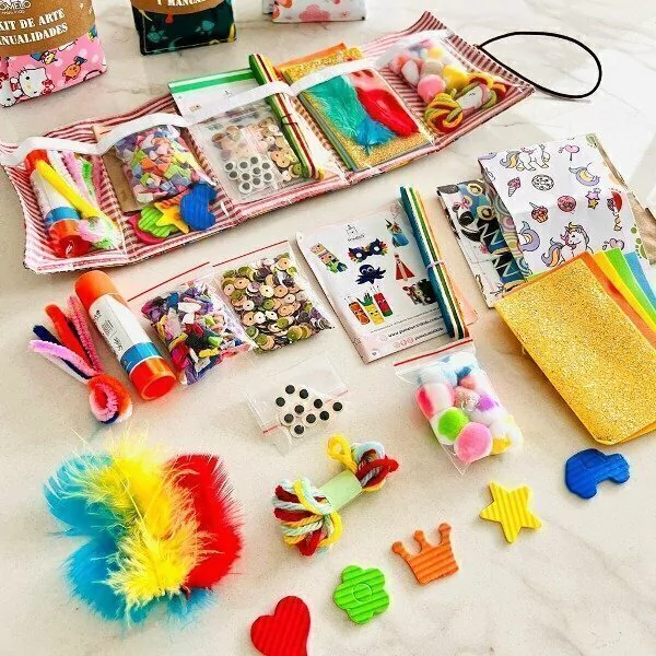 Este kit ofrece una variedad de materiales para estimular la imaginación y la motricidad fina en los niños, fomentando momentos de juego creativo y aprendizaje. Además, su tamaño compacto y su diseño funcional lo convierten en una opción perfecta para viajes y salidas.