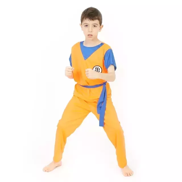 Disfraz completo de GOKÚ DRAGON BALL Z. Incluye Remera estampada con escudo en el frente y en la espalda, cinturón lazo tipo arte marcial, y pantalón.