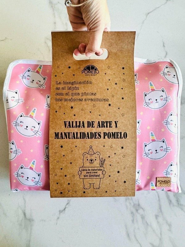 La Valija de Arte XL Pomelo es el kit ideal para niños y niñas de 3 a 12 años que desean explorar el mundo del arte y la manualidad. Su diseño compacto y práctico, con una valija de tela impermeable y cierre con botón a presión, facilita el transporte y almacenamiento de todos los materiales incluidos.